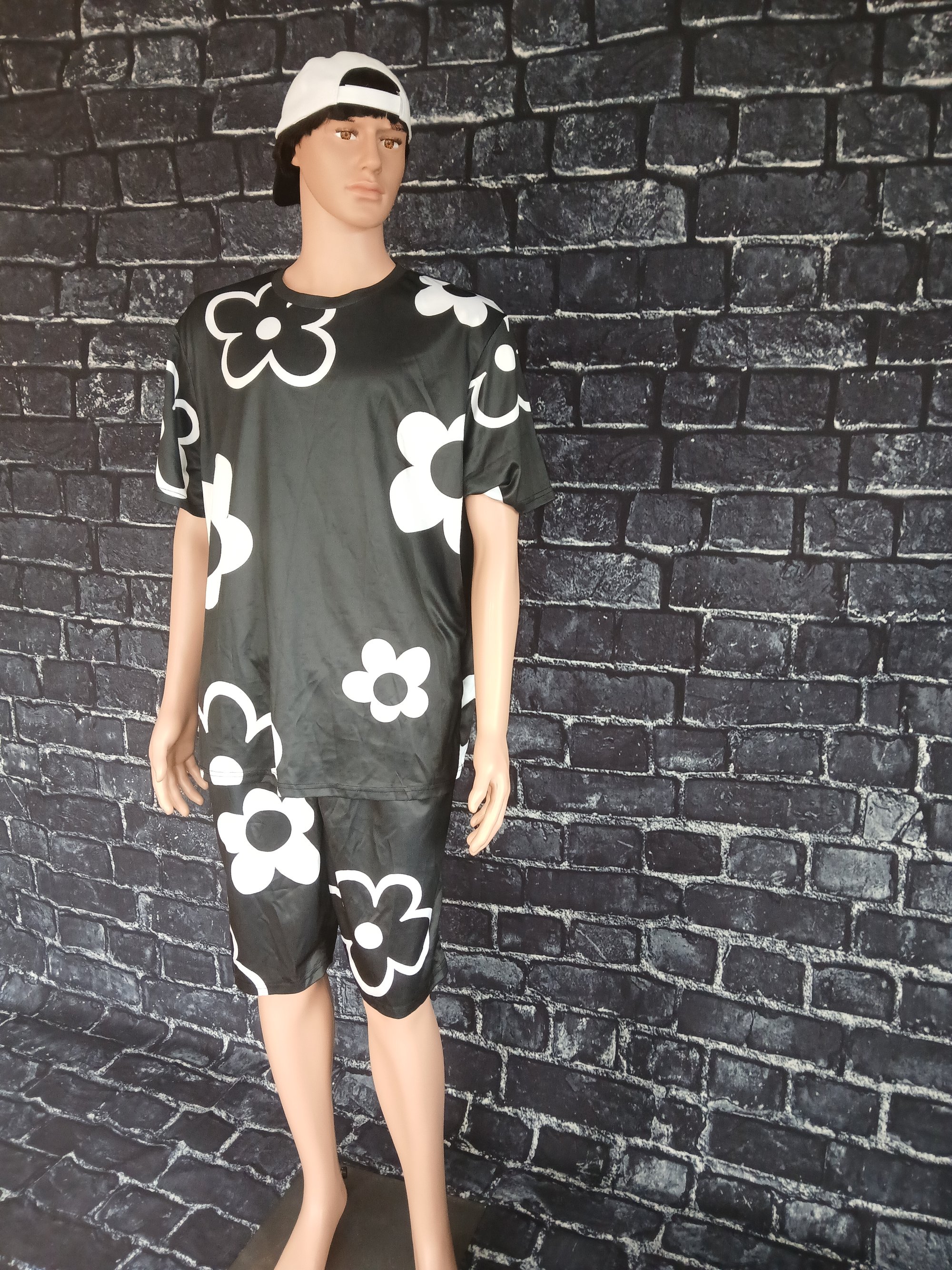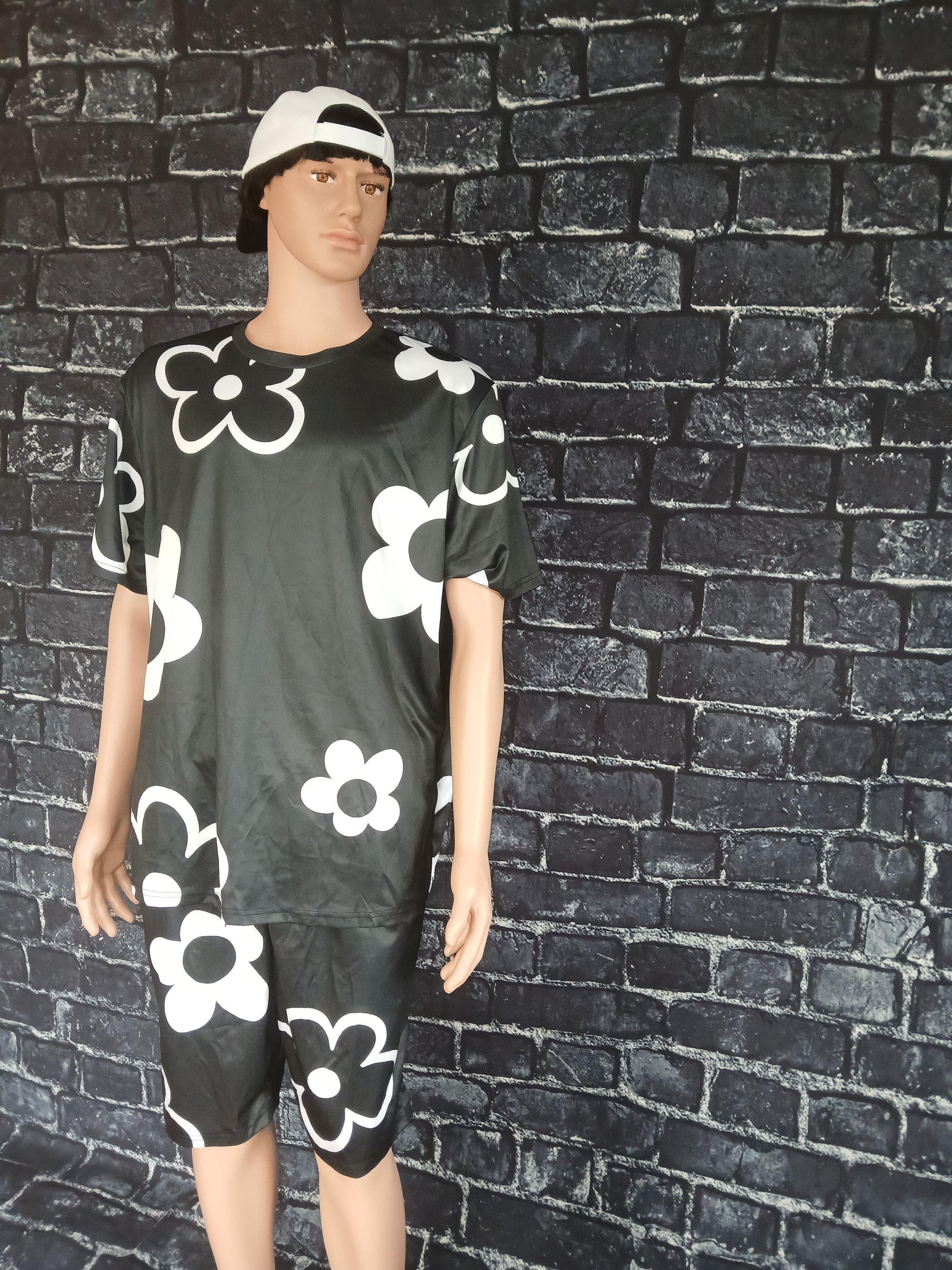 Black and white Men's short set this short set is a great look for the spring and summer weather. You can also wear this short set on a day out or at the beach.