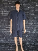 Navy blue short set for men. This short set will look good on a night out on the town with that special someone. You can also wear this short set when your hanging out with friends.