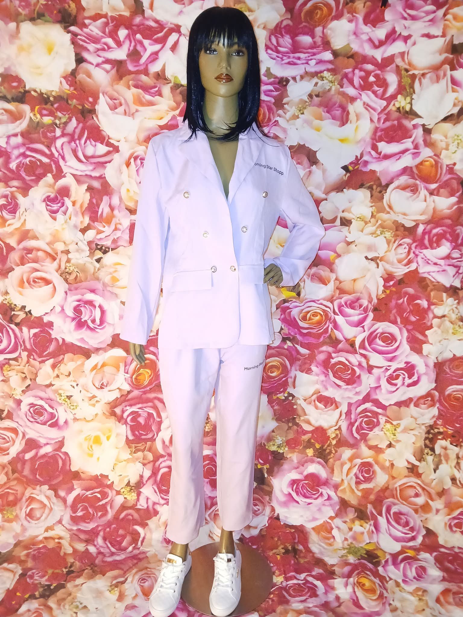 Womens purple blazer pants suit gold buttons on blazer size Extra Large one left.